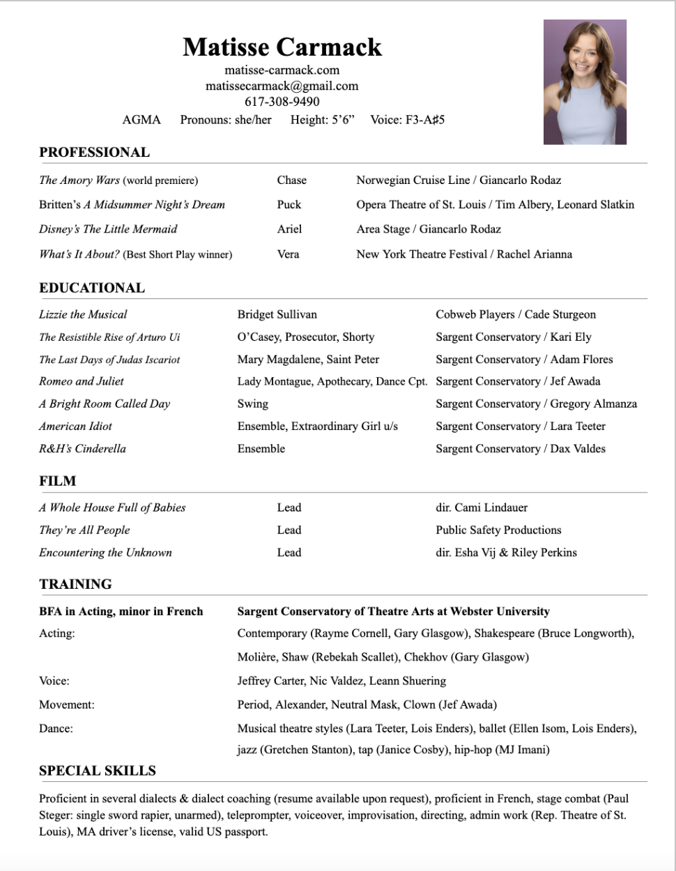 Headshot and Resume